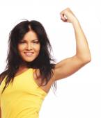 młoda sportowa kobieta zginająca bicepsy