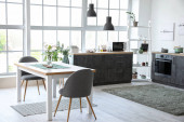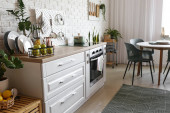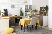 Zdjęcie "Studio apartament z nowoczesną kuchnią" może być wykorzystywane do celów osobistych i komercyjnych zgodnie z warunkami zakupionej licencji Royalty-free. Obraz jest dostępny do pobrania w jakości wysokiej rozdzielczości do 5760x3840.