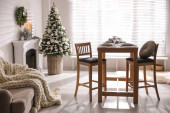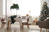 Zdjęcie "Wnętrze świetlicy z choinką i stołem" może być wykorzystywane do celów osobistych i komercyjnych zgodnie z warunkami zakupionej licencji Royalty-free. Obraz jest dostępny do pobrania w jakości wysokiej rozdzielczości do 5760x3840.