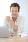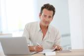 Zdjęcie "Mężczyzna pracujący w domu na laptopie" może być wykorzystywane do celów osobistych i komercyjnych zgodnie z warunkami zakupionej licencji Royalty-free. Obraz jest dostępny do pobrania w jakości wysokiej rozdzielczości do 5760x3840.