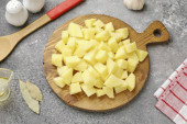 Zdjęcie "Obrać warzywa i pokroić na kilka kawałków." może być wykorzystywane do celów osobistych i komercyjnych zgodnie z warunkami zakupionej licencji Royalty-free. Obraz jest dostępny do pobrania w jakości wysokiej rozdzielczości do 5760x3840.