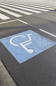 Podpis z symbolem wózka inwalidzkiego na parkingu, miejsce na tekst