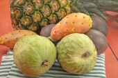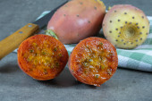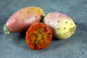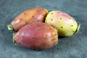 zbliżenie Opuntia ficus indica, egzotyczne owoce na żółtym tle