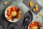 Zdjęcie "Jollof ryż z głęboko smażoną plantaną - pikantne wegetariańskie danie ryżowe" może być wykorzystywane do celów osobistych i komercyjnych zgodnie z warunkami zakupionej licencji Royalty-free. Obraz jest dostępny do pobrania w jakości wysokiej rozdzielczości do 5760x3840.
