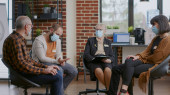 Kobieta niepełnosprawna uczestniczy aa sesja terapii grupowej z ludźmi w kręgu