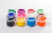 Słoiki farb do rysowania, wielobarwne, malarstwo, rozwój artystyczny i hobby oraz rekreacja, odizolowane na białym tle
