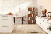 Zdjęcie "Wnętrze jasnej kuchni z białymi licznikami, artykułami spożywczymi i regałowymi" może być wykorzystywane do celów osobistych i komercyjnych zgodnie z warunkami zakupionej licencji Royalty-free. Obraz jest dostępny do pobrania w jakości wysokiej rozdzielczości do 5760x3840.