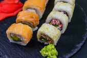 Sushi bułki Filadelfia na czarnym łupku