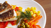 Talerz pstrąga Bohinj z gotowanymi ziemniakami i sałatką w Słowenii.
