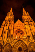 Zdjęcie "Noc poza oświetlonymi światłami Fasada katedry Bayeux Zamknij Kościół Matki Bożej Bayeux Bayeux Normandy Francja. Kościół katolicki poświęcony przez króla Wilhelma Zdobywcę w 1077 r." może być wykorzystywane do celów osobistych i komercyjnych zgodnie z warunkami zakupionej licencji Royalty-free. Obraz jest dostępny do pobrania w jakości wysokiej rozdzielczości do 5760x3840.