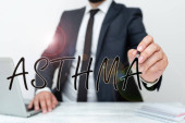 Podpis wykazujący astmę. Koncepcyjne zdjęcie Stan oddechowy naznaczony skurczami oskrzeli płuc Streszczenie Burza mózgów Problem i rozwiązanie, Ostrożne myślenie Concept