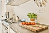 Zdjęcie "Atrakcyjna kuchnia ze stylową i nowoczesną płytą gazową" może być wykorzystywane do celów osobistych i komercyjnych zgodnie z warunkami zakupionej licencji Royalty-free. Obraz jest dostępny do pobrania w jakości wysokiej rozdzielczości do 5760x3840.
