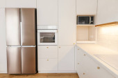 Zdjęcie "Atrakcyjna kuchnia ze stylowym piekarnikiem" może być wykorzystywane do celów osobistych i komercyjnych zgodnie z warunkami zakupionej licencji Royalty-free. Obraz jest dostępny do pobrania w jakości wysokiej rozdzielczości do 5760x3840.