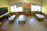 stoły i krzesła w refektarzu szkolnej stołówce w nu