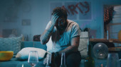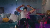 Poważny DJ podczas domowej imprezy