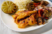 Zdjęcie "Peru obiad pollo a la brasa nogi kurczaka z Aji Amarillo ryż risotto" może być wykorzystywane do celów osobistych i komercyjnych zgodnie z warunkami zakupionej licencji Royalty-free. Obraz jest dostępny do pobrania w jakości wysokiej rozdzielczości do 5760x3840.