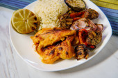 Zdjęcie "Peru obiad pollo a la brasa nogi kurczaka z Aji Amarillo ryż risotto" może być wykorzystywane do celów osobistych i komercyjnych zgodnie z warunkami zakupionej licencji Royalty-free. Obraz jest dostępny do pobrania w jakości wysokiej rozdzielczości do 5760x3840.