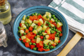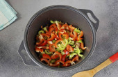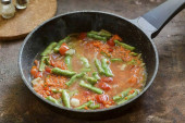 Podgrzać trochę oleju w patelni i dodać warzywa. Gotować przez 3 protokół, mieszając sporadycznie.