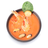 Miska smacznej tajskiej zupy na białym tle