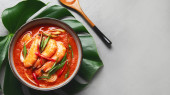 Miska smacznej tajskiej zupy na białym tle