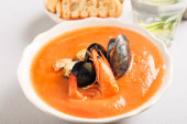 Miska pikantnej tajskiej zupy na białym tle