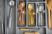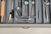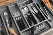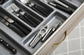 Zdjęcie "Szuflada otwarta kuchnia ze złotym sztućcem, zbliżenie" może być wykorzystywane do celów osobistych i komercyjnych zgodnie z warunkami zakupionej licencji Royalty-free. Obraz jest dostępny do pobrania w jakości wysokiej rozdzielczości do 5760x3840.