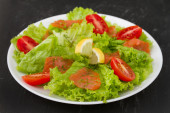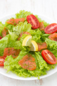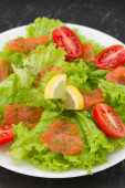 Zdjęcie "Sałatka z łososiem i pomidorami" może być wykorzystywane do celów osobistych i komercyjnych zgodnie z warunkami zakupionej licencji Royalty-free. Obraz jest dostępny do pobrania w jakości wysokiej rozdzielczości do 5760x3840.