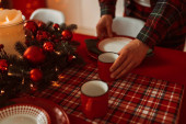 Zdjęcie "Świąteczna kuchnia i stół. Czerwony, zielony i biały wystrój choinki tle. Święto Nowego Roku. Wesołych Świąt i Szczęśliwego Nowego Roku" może być wykorzystywane do celów osobistych i komercyjnych zgodnie z warunkami zakupionej licencji Royalty-free. Obraz jest dostępny do pobrania w jakości wysokiej rozdzielczości do 5760x3840.