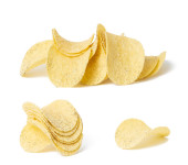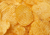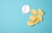 okrągłe chipsy ziemniaczane na beżowym tle, widok z góry
