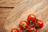 pomidory wiśniowe na gałęzi na drewnianej desce składnik kuchni świeże jedzenie