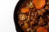 Serdeczny gulasz wołowy domowej roboty z marchewką i ziemniakami