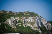 Dover City, port, otaczające krajobraz i budynki, Zjednoczone Królestwo 14 września 2021 w pobliżu Dover Castle, Anglia, Zjednoczone Królestwo.