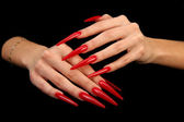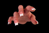 ludzkie palce z długim paznokciem i piękny manicure na czarnym tle
