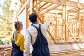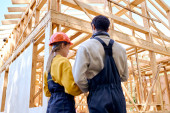 Zdjęcie "Tylne widok na dwóch budowniczych w mundurze pracy Poznaj dokumentację budowlaną" może być wykorzystywane do celów osobistych i komercyjnych zgodnie z warunkami zakupionej licencji Royalty-free. Obraz jest dostępny do pobrania w jakości wysokiej rozdzielczości do 5760x3840.