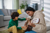 Zdjęcie "Afrykańska amerykanka ze smartfonem robiącym zdjęcia córce grającej na gitarze w domu" może być wykorzystywane do celów osobistych i komercyjnych zgodnie z warunkami zakupionej licencji Royalty-free. Obraz jest dostępny do pobrania w jakości wysokiej rozdzielczości do 5760x3840.