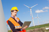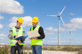 dwóch inżynierów w elektrowni wiatrowej