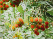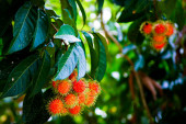 Arbutus unedo lub drzewo truskawkowe z owocami i ciemnozielonymi liśćmi