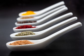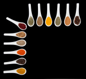 sosy, zmieszane w ceramicznych łyżki