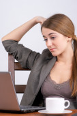 biznes kobieta szuka zaskoczony na ekranie laptopa