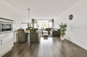 Zdjęcie "Stylowy salon połączony z jadalnią" może być wykorzystywane do celów osobistych i komercyjnych zgodnie z warunkami zakupionej licencji Royalty-free. Obraz jest dostępny do pobrania w jakości wysokiej rozdzielczości do 5760x3840.