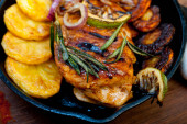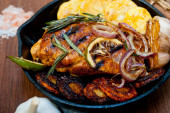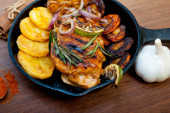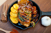 pieczony grill piersi kurczaka z ziół i przypraw w stylu rustykalnym na patelni żelaza