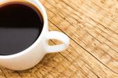 biały ceramiczny kawy Cup w stosunku 1 do 1 - strzał studio - drewniany stół z bliska