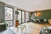 Zdjęcie "Wspaniały salon z czarną wygodną sofą" może być wykorzystywane do celów osobistych i komercyjnych zgodnie z warunkami zakupionej licencji Royalty-free. Obraz jest dostępny do pobrania w jakości wysokiej rozdzielczości do 5760x3840.