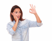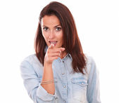dla dorosłych brunetka z zawód znak patrzy na Ciebie