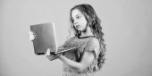 Zdjęcie "zakupy online. projektu szkolnego. rozwoju dziecka w erze cyfrowej. grać w gry komputerowe. rozpoczęcie działalności. szczęśliwy dziewczynka z laptopem. edukacji domowej. Stylowa Dziewczyna mody otwarte Notebook" może być wykorzystywane do celów osobistych i komercyjnych zgodnie z warunkami zakupionej licencji Royalty-free. Obraz jest dostępny do pobrania w jakości wysokiej rozdzielczości do 5760x3840.