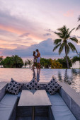 Zdjęcie "para mężczyzna i kobieta oglądający zachód słońca z dachu basenu infinity na luksusowych wakacjach" może być wykorzystywane do celów osobistych i komercyjnych zgodnie z warunkami zakupionej licencji Royalty-free. Obraz jest dostępny do pobrania w jakości wysokiej rozdzielczości do 5760x3840.