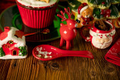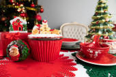 Świąteczne tło. Świąteczne zastawy stołowe i dekoracje na stole.