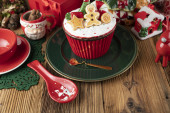 Zdjęcie "Świąteczne tło. Świąteczne zastawy stołowe i dekoracje na stole." może być wykorzystywane do celów osobistych i komercyjnych zgodnie z warunkami zakupionej licencji Royalty-free. Obraz jest dostępny do pobrania w jakości wysokiej rozdzielczości do 5760x3840.
