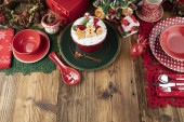 Zdjęcie "Świąteczne tło. Świąteczne zastawy stołowe i dekoracje na stole." może być wykorzystywane do celów osobistych i komercyjnych zgodnie z warunkami zakupionej licencji Royalty-free. Obraz jest dostępny do pobrania w jakości wysokiej rozdzielczości do 5760x3840.