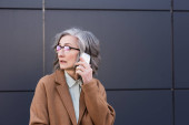 Zdjęcie "Wesoła bizneswoman w płaszczu i okularach trzyma smartfona z pustym ekranem na zewnątrz " może być wykorzystywane do celów osobistych i komercyjnych zgodnie z warunkami zakupionej licencji Royalty-free. Obraz jest dostępny do pobrania w jakości wysokiej rozdzielczości do 5760x3840.
